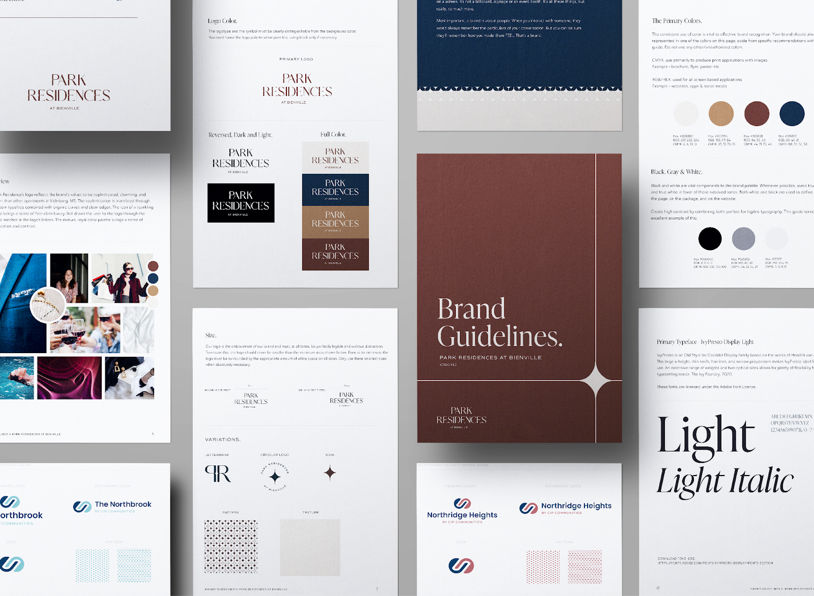 A solid brand kit creates portfolio consistency, so each community can have its own unique identity while still feeling like part of a bigger family. This structure makes it easier to scale, keeps marketing costs down, and strengthens the reputation of the entire portfolio instead of just one property at a time.