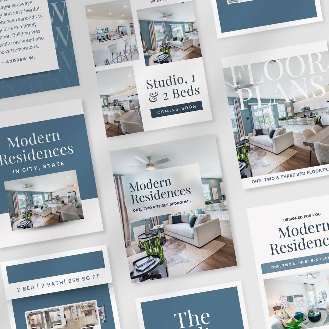 Our templates are thoughtfully organized into strategic categories so you can communicate every aspect of your property, from floor plans to local date night spots. This means you’re not just getting eye-catching graphics—you’re getting content that’s tailored to highlight what matters most to your community and drive real engagement.