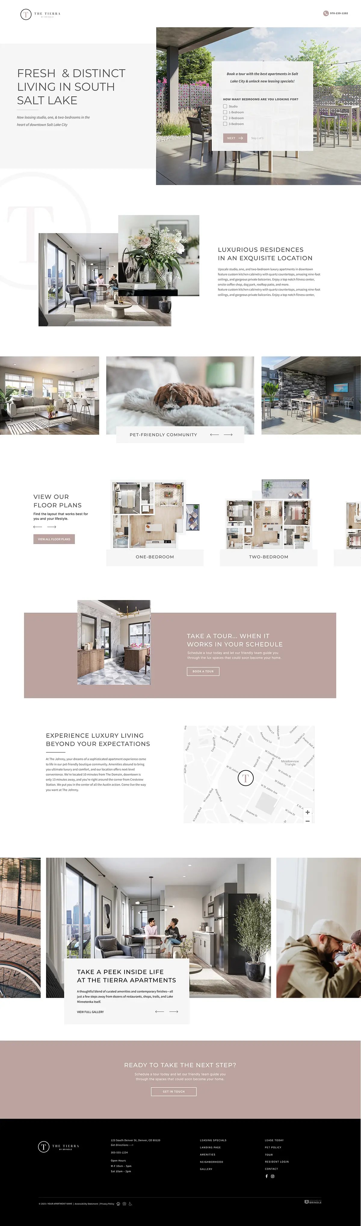 For quick to launch and an affordable option, our apartment website templates are a great fit and pricing is listed above. Custom websites are quoted and vary in price depending on the overall scope of the project. Book a demo and learn more.