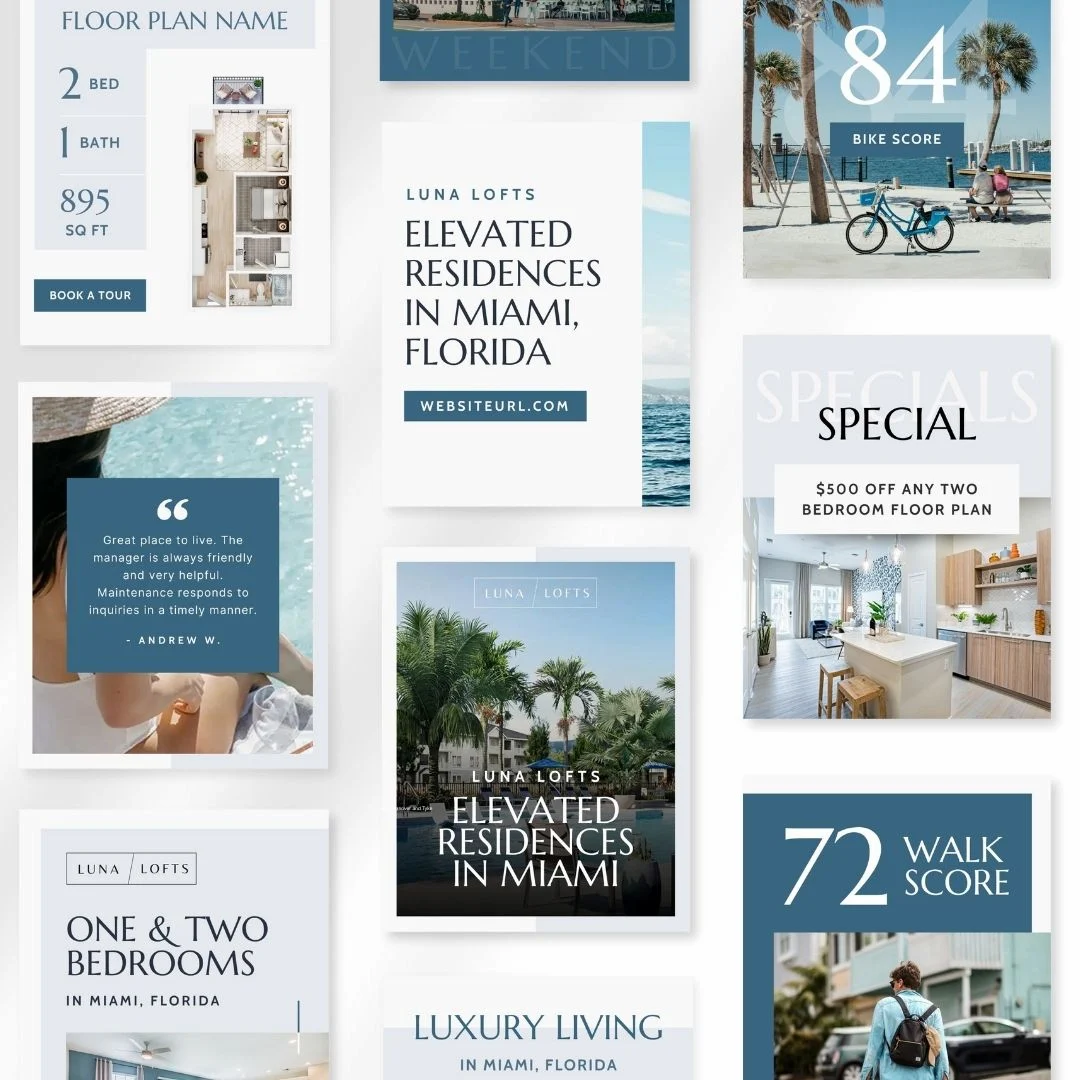 Our templates are thoughtfully organized into strategic categories so you can communicate every aspect of your property, from floor plans to local date night spots. This means you’re not just getting eye-catching graphics—you’re getting content that’s tailored to highlight what matters most to your community and drive real engagement.